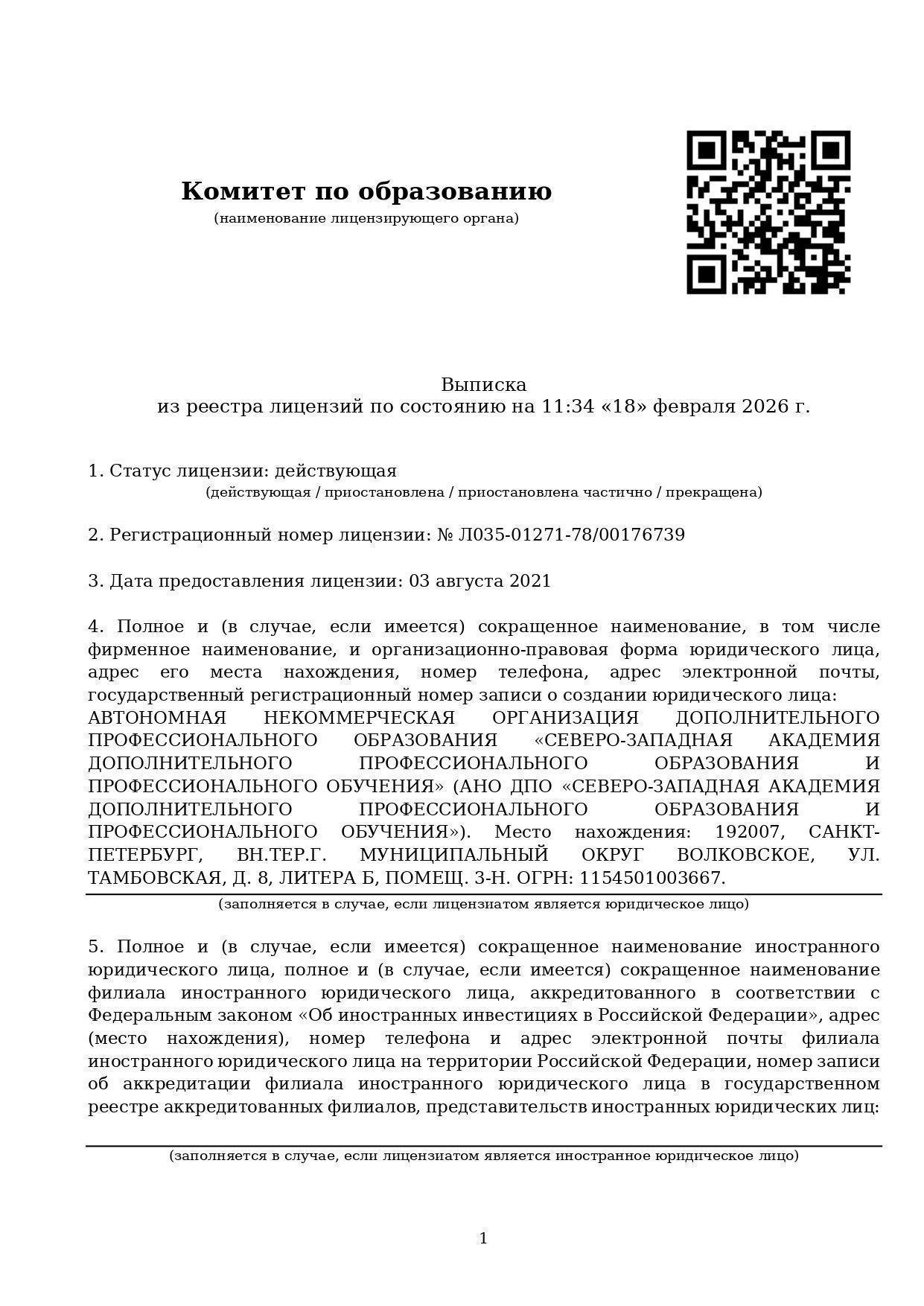 Проверить актуальность лицензии Академии вы можете на официальном сайте Федеральной службы по надзору в сфере образования и науки, указав полное название образовательной организации или ИНН 4501201883.