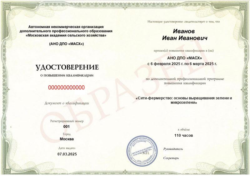 Курс повышения квалификации Сити-фермерство: основы выращивания зелени и микрозелени (110ч)