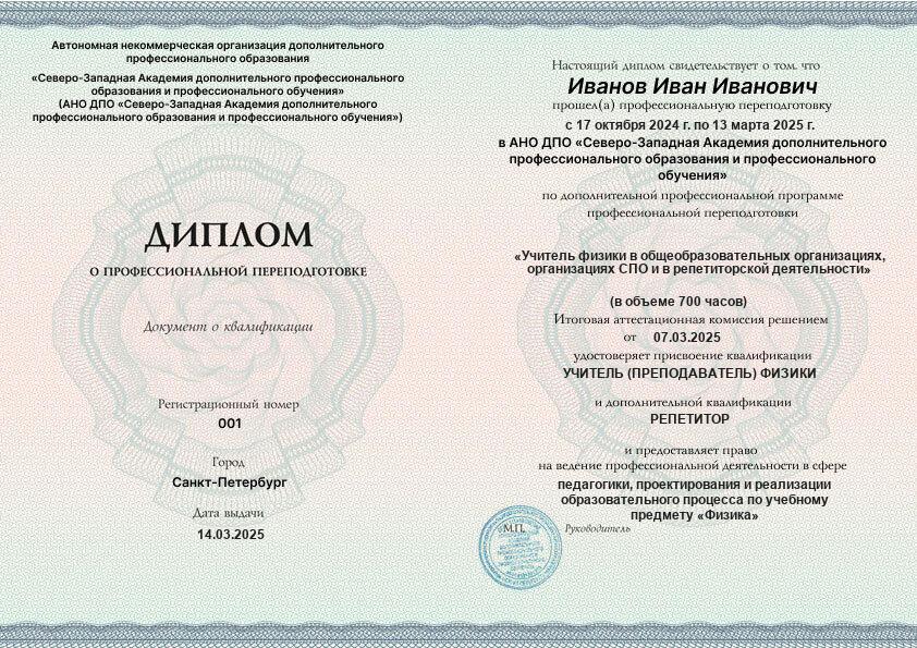 - 2 квалификации: Учитель (преподаватель) физики + Репетитор