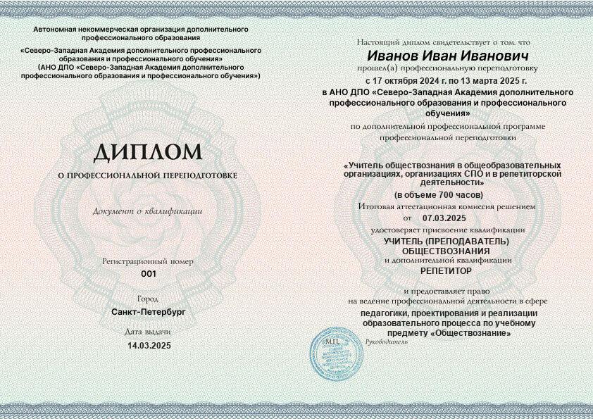 - 2 квалификации: Учитель (преподаватель) обществознания + Репетитор
